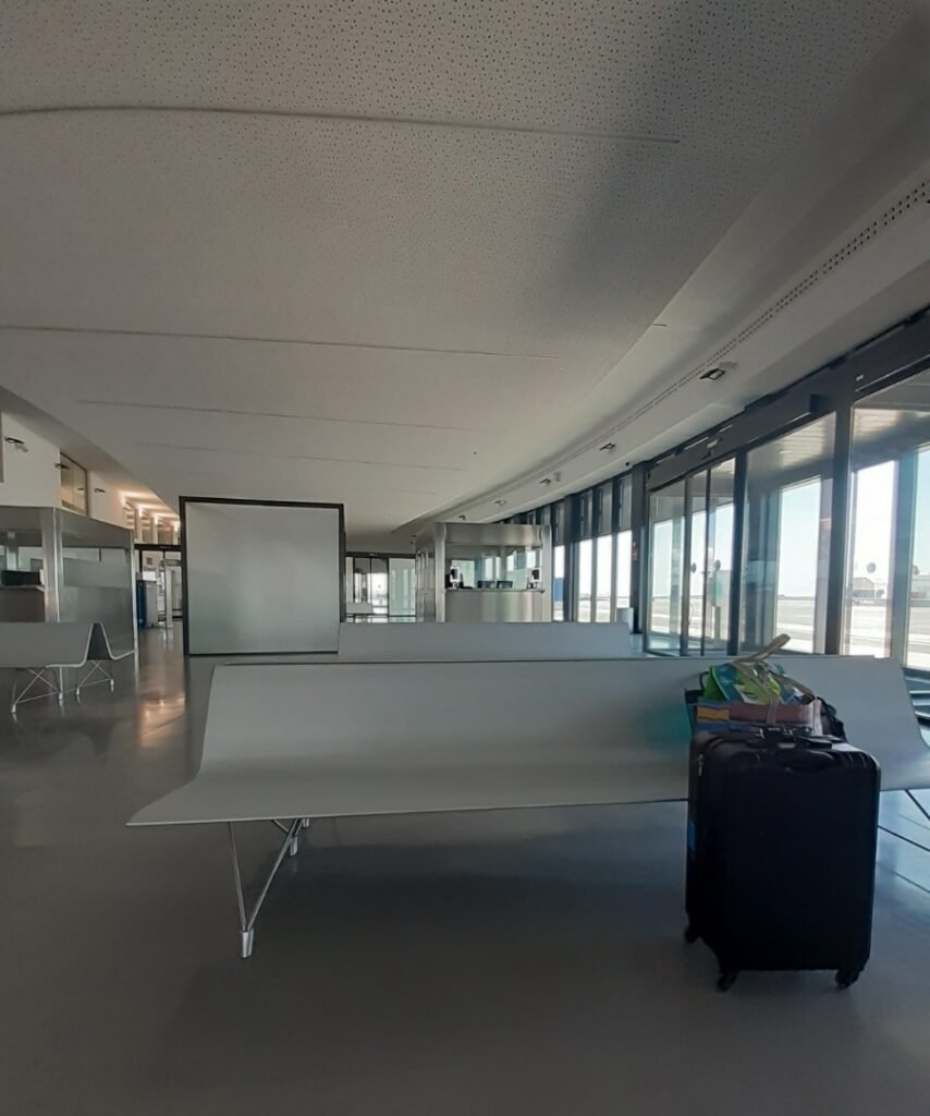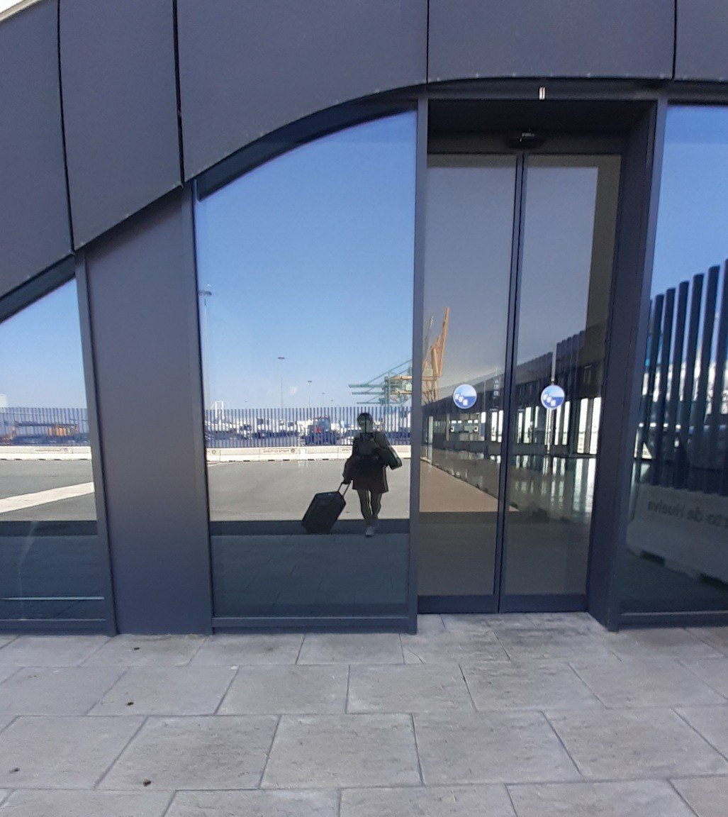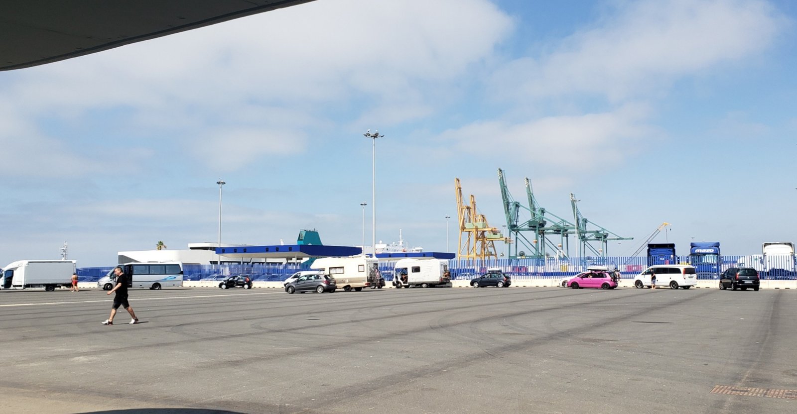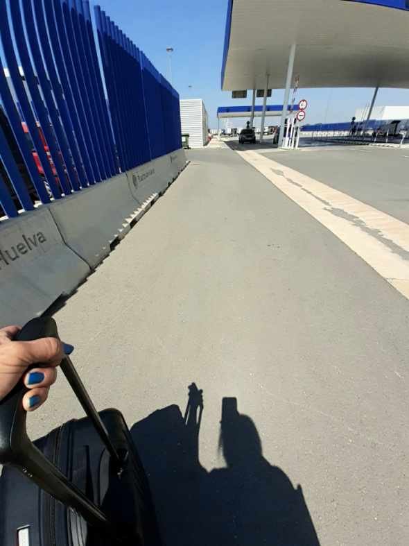 I arrived at the Puerto de Huelva Ferry Port 3 hours early by choice. Can’t afford to miss this ferry, plus no time to venture anywhere else. This is what I pictured, no fancy waiting area, just bathrooms and two vending machines. Seems more like a shipping port that’s not for people. But I found my way. Most of the passengers here are going by car. Only 5 of us are going on foot.